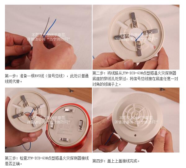 1.JTW-ZCD-G3N點型感溫火災探測器與控制器采用無極性二總線連接;