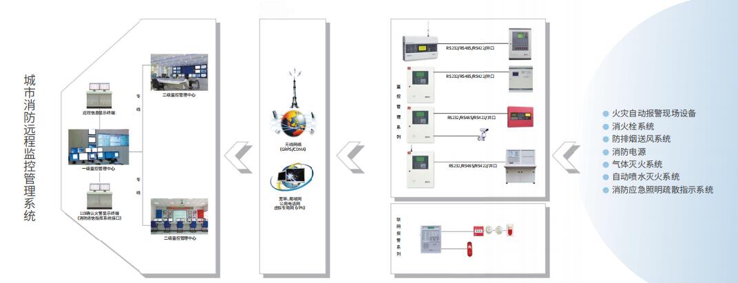 海灣GST119NET城市消防遠程監(jiān)控管理系統(tǒng),以現(xiàn)代通信和網(wǎng)絡傳輸技術為基礎結合語音對講、視頻聯(lián)動確認,WEB信息發(fā)布等多種先進手段,可以對包括城市區(qū)內(nèi)重點單位、大型室內(nèi)娛樂場所、高層建筑、地下設施、賓館、商場、石化企業(yè)、易燃易爆性質(zhì)等單位企業(yè)的建筑物火災報警系統(tǒng)進行大區(qū)域聯(lián)網(wǎng)管理,實現(xiàn)有效監(jiān)管、快速報警,確保了火災探測報警系統(tǒng)和消防安全設施正常運行,提高火災探測報警系統(tǒng)的可靠性、降低誤報率;同時通過傳輸火災探測報警系統(tǒng)的設備運行數(shù)據(jù)和報警信息,為消防監(jiān)管和滅火救援部門提供強有力技術支持,實現(xiàn)消防報警自動化,提高對火災初期的發(fā)現(xiàn)和報警速度,準確迅速撲救火災,加速了城市消防管理智能化、網(wǎng)絡化的發(fā)展進程,從而提高整體防災減災技術水平和綜合能力。