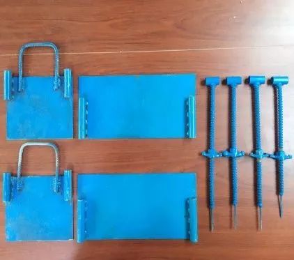2)由螺桿可將四塊鋼板拼接起來,通過調節螺栓可使該模具固定在指定位置。