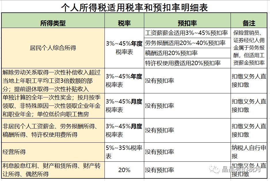 有關個稅的稅率和預扣率,建議可以從以下12個要點來學習理解: